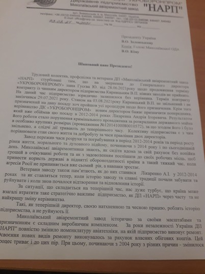 Колектив Миколаївського авіаремонтного заводу звернувся до президента (документ)