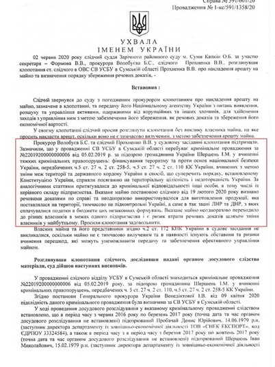 Як зазначає телеканал Zik, СБУ Сумської області проводить досудове розслідування кримінального провадження № 22019200000000006 від 5 лютого 2019 року за підозрою громадянина Шершеня І. М. в здійсненні тяжких кримінальних правопорушень: фінансування тероризму і проти основ національної безпеки України.