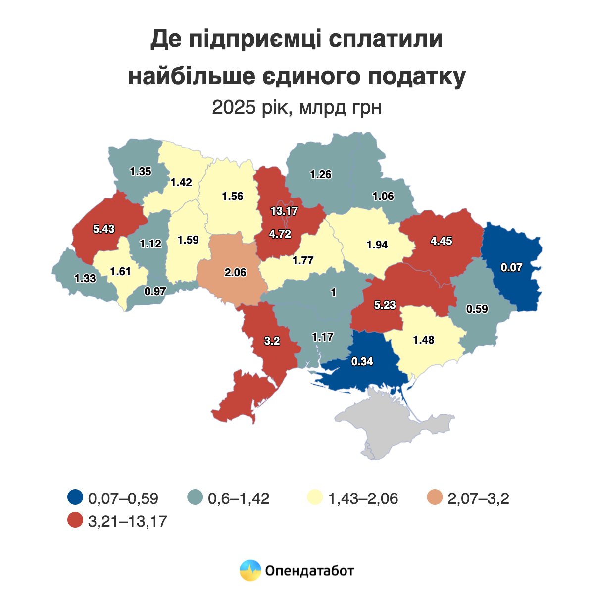 Столиця лідирує і за окремими групами: у третій групі майже чверть усіх надходжень – 11,6 млрд грн – забезпечили саме київські підприємці. У другій групі Київ також попереду з 1,5 млрд грн. Водночас у першій групі найбільше сплатили підприємці з Одещини – 48 млн грн. У четвертій групі серед фермерів лідирує Волинь, за нею – Хмельниччина та Миколаївщина.