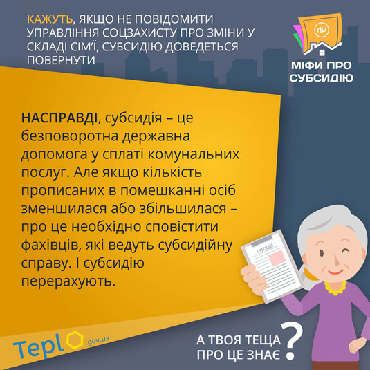 Міф №2. Кажуть, якщо не повідомити управління соцзахисту про зміни у складі сім’ї, субсидію доведеться повернути
