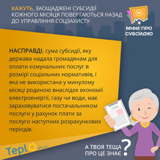 Міф №3. Кажуть, заощаджені субсидії кожного місяця повертаються назад до управління соціального захисту населення
