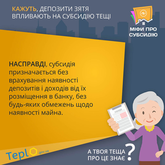Міф №4. Кажуть, депозити зятя впливають на субсидію тещі