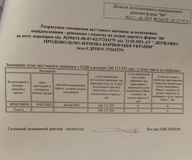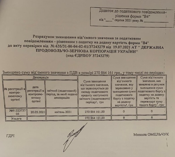 У рішеннях ідеться про два звітних періоди, за які подано декларації: лютий і квітень 2021 року. Суми завищення становлять понад 236 млн та майже 271 млн відповідно.