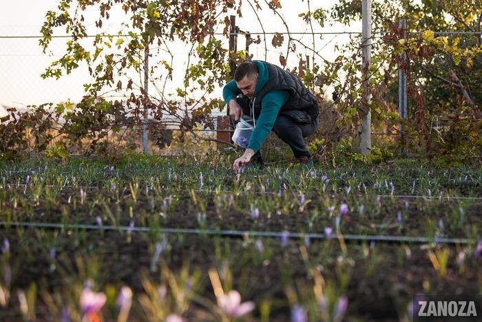 «В кожній квіточці є три червоних ниточки-рильця. Коли їх висушують це і є спеція шафран. З ранку ми збираємо квіти, потім вручну витягуємо ці рильця. Бажано збирати закриті квіти, щоб рильця не в'янули і не обсипався пилок. Щоб отримати 1 грам спеції, потрібно зібрати близько 150 квіток. У кожній квітці 3 рильця, значить виходить в грамі приблизно 450 рилець. У пік цвітіння ми збираємо по 3-4 тисячі квіток за день. Часу йде дуже багато, особливо щоб розібрати квітки і посушити, процес трудомісткий», - зазначив чоловік.