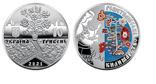 Також вводиться в обіг пам'ятна монета «Решетилівське килимарство» номіналом 10 грн, виготовлена зі срібла, масою 31,1 г, діаметром 38,6 мм. Тираж випуску становить 3 тис. шт.