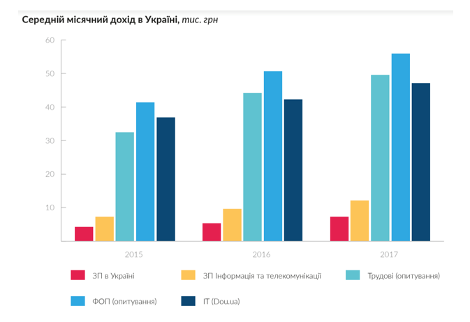 У сфері інформаційних технологій в Україні відносини з працівниками часто оформлені через ФОПи. Низьке податкове навантаження для ФОП і невисока вартість життя в Україні дозволяє українським фахівцям успішно конкурувати на глобальному IT-ринку. До того ж, середня зарплата у сфері інформаційних технологій в Україні – $2000.