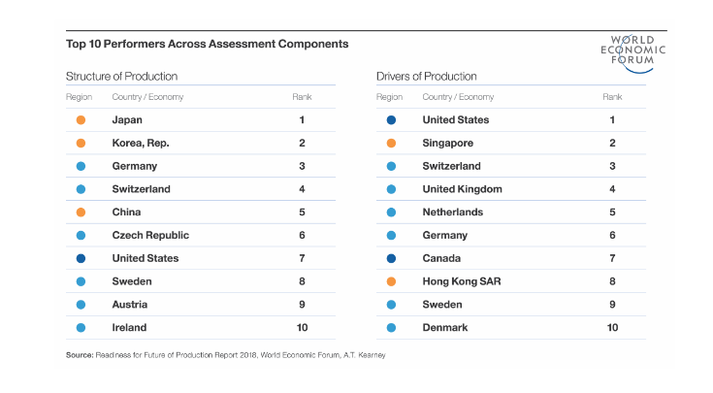 Згідно з рейтингом, ці країни знаходяться в найкращій позиції до нового витка розвитку технологій і зможуть швидко перебудувати свої виробничі системи.