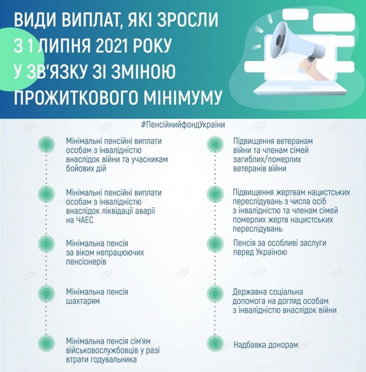 Пенсійний фонд України назвав види виплат, які зросли після підвищення з 1 липня 2021 року в Україні розміру прожиткового мінімуму.