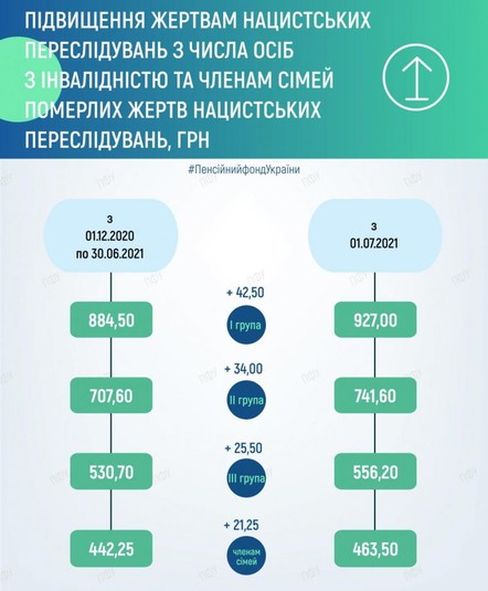 - Підвищення жертвам нацистських переслідувань з числа осіб з інвалідністю та членам сімей померлих жертв нацистських переслідувань