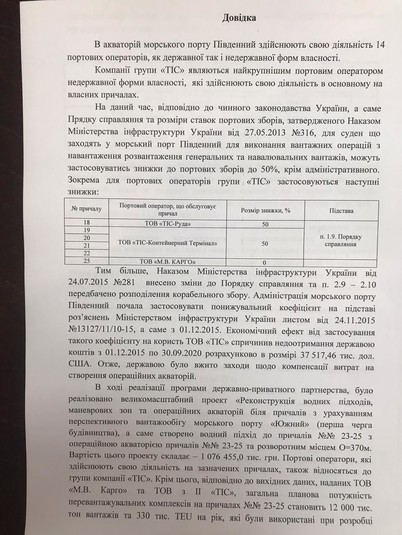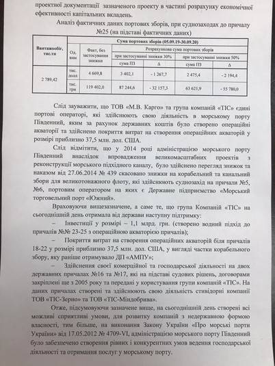 Приватна стивідорна компанія ТІС перевалює найбільший потік вантажів у порту «Південний», але податків сплачує удвічі менше, ніж державний конкурент, – зазначається в програмі. За попередніми розрахунками експертів за рік держава недоотримує щонайменше 600 млн грн податків. В державній стивідорній компанії, яка працює у порту «Південний» це пояснюють державним податковим регулюванням та відрахуваннями, які різняться в державному підприємстві та приватній компанії. На офіційні запити ICTV Державна податкова служба і прес-служба самого Ставніцера відмовилися коментувати журналістам це питання.