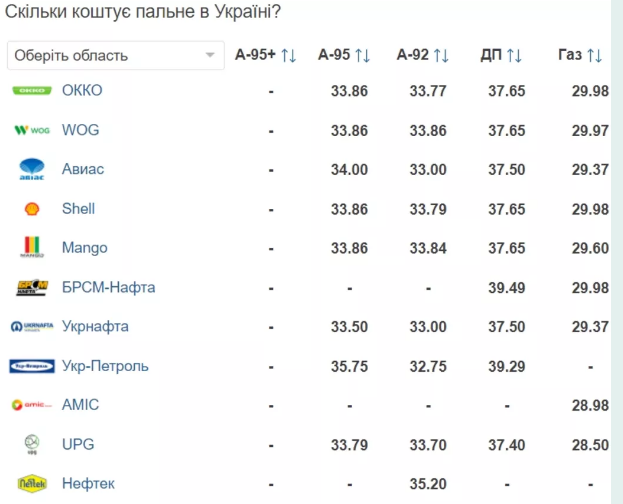 А-95 можна придбати за ціною від 33,33 грн/л. Середня ринкова ціна коливається в межах 33,98-34,06 грн/л. Подорожчання сягає 23-30 коп. за останні кілька днів.