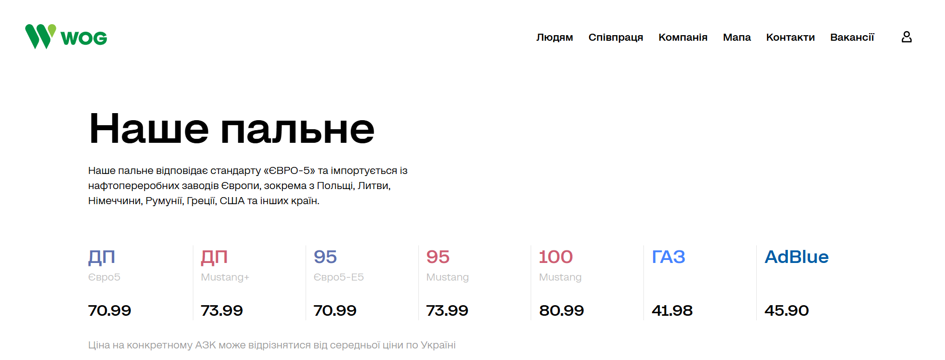 • WOG – 70,99 грн за літр;