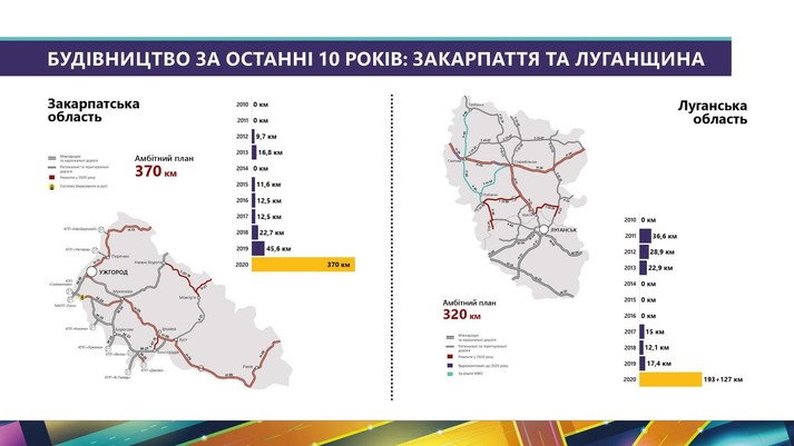 У той же час, в Луганській та Закарпатській областях ремонтували по 19-45 км в рік. Тепер ці області - в лідерах «Великого будівництва».