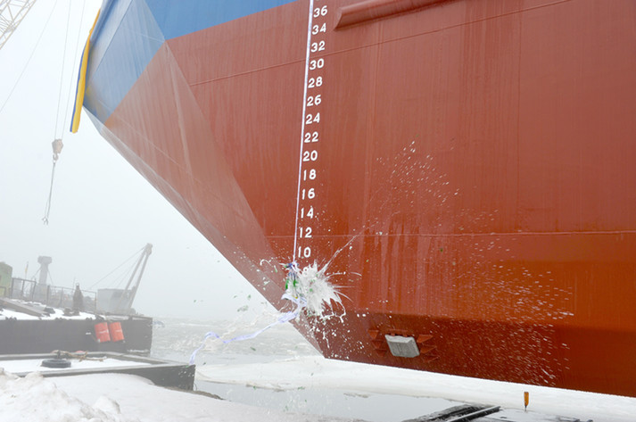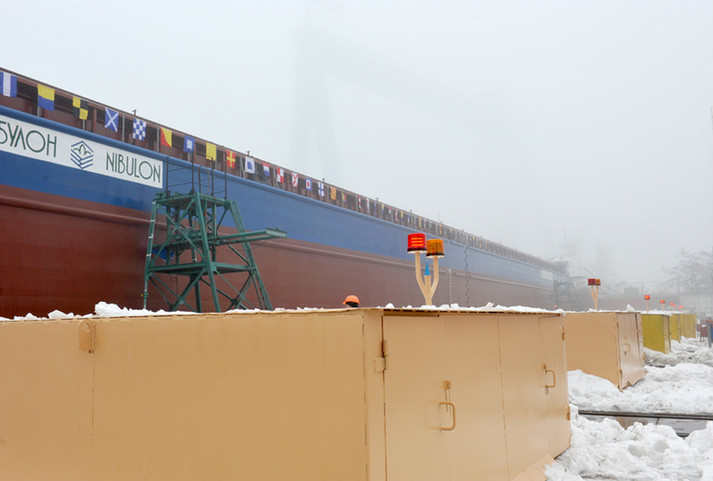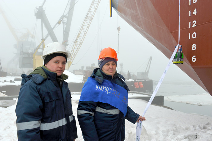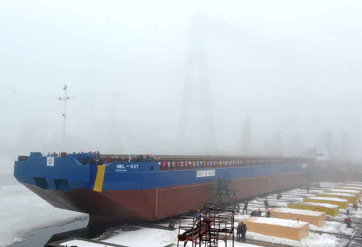 «Спуск цього судна був запланований раніше, але на той час припала негода, що спричинила перемерзання заливу. У таких екстремальних умовах спускати судно недоцільно, адже сильний вітер та пониження температури викликали коливання рівня води до 1 м. Звичайно, і сьогодні також погодні умови непрості, сильний туман і крига, але ми змушені все ж таки спускати це судно, адже наступні замовлення вже зачекалися свого переміщення на стапельні плити. У понеділок спускати судно не прийнято, а вівторок – дуже далеко і ми згаємо багато робочого часу. А технологічний цикл будівництва суден зупиняти не можна!», – пояснив головний інженер заводу Іван Таужнянський.