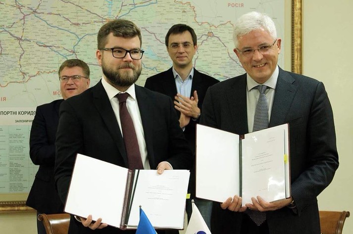 У Києві підписано гарантійну угоду про виділення Європейським банком реконструкції та розвитку (ЄБРР) кредиту в обсязі 150 млн. євро для будівництва другої колії, електрифікації та модернізації систем сигналізації і зв'язку на напрямку Долинська – Миколаїв – Колосівка. Про це у своєму Facebook повідомив міністр інфраструктури України Володимир Омелян.