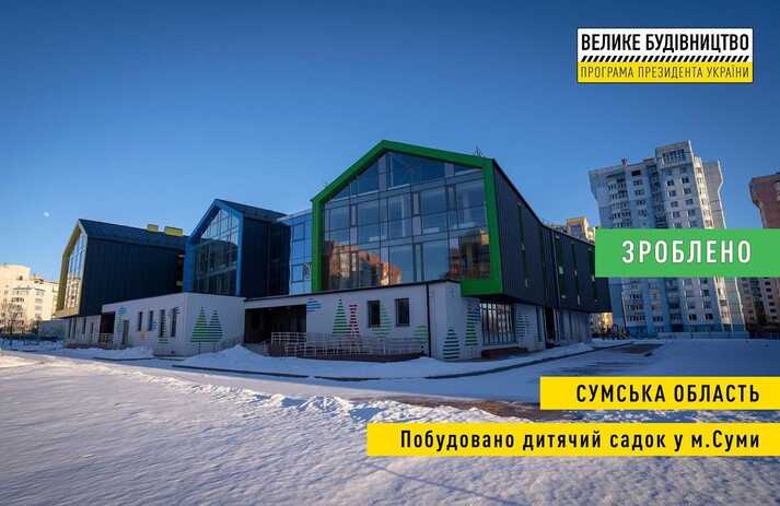 У мережі з’явилися світлини нового дитячого садочка, який у Сумах побудували у межах програми президента Володимира Зеленського «Велике будівництво». Їх оприлюднив у своєму Facebook Юрій Голик.