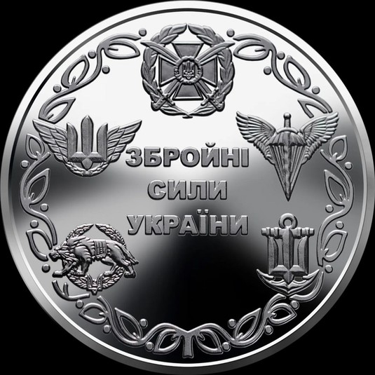 10-гривнева монета присвячена ЗСУ, які стали на захист суверенітету країни. Грошовий знак виготовлений із цинкового сплаву з нікелевим покриттям, його тираж 1 млн штук.
