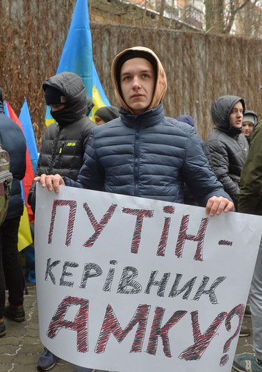 Громадські активісти, серед яких багато ветеранів АТО, пікетували Антимонопольний комітет України з вимогою припинити захист інтересів представників російського бізнесу, на яких в Україні накладено санкції.