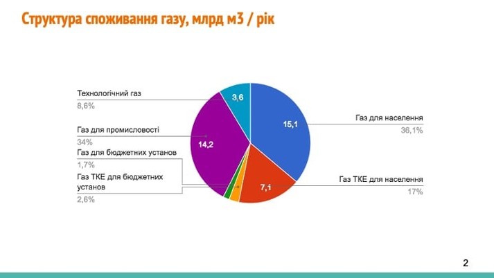 - З 18,6 млрд кубометрів газу, які використовують на потреби населення, ефективно витрачають тільки 7,2 млрд;