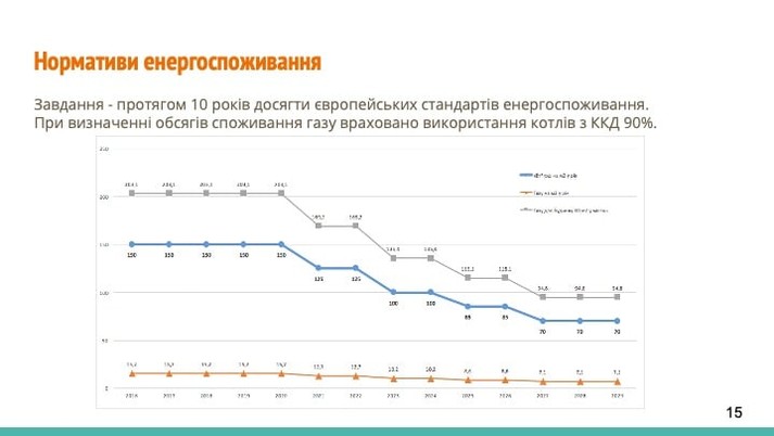 - за ці 5 років споживання газу приватними домоволодіннями скорочується з 12 до 6-7 млрд кубів на рік;