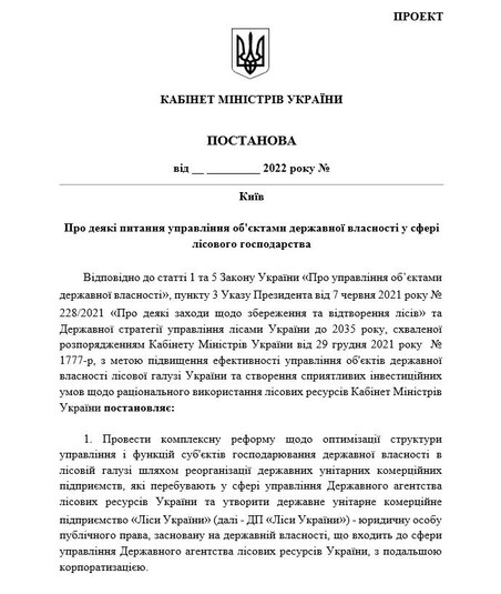 «Мої джерела в Кабміні повідомляють, що Заступник голови Офісу президента Ростислав Шурма серед війни намагається продавити злочинну ухвалу уряду, згідно з якою все лісове господарство реорганізується для подальшої «корпоратизації» – передачі до приватних рук (текст постанови додаю нижче). І робить він це, нахабно прикриваючись іменем Володимира Зеленського», – стверджує Цибулько у своєму Facebook.