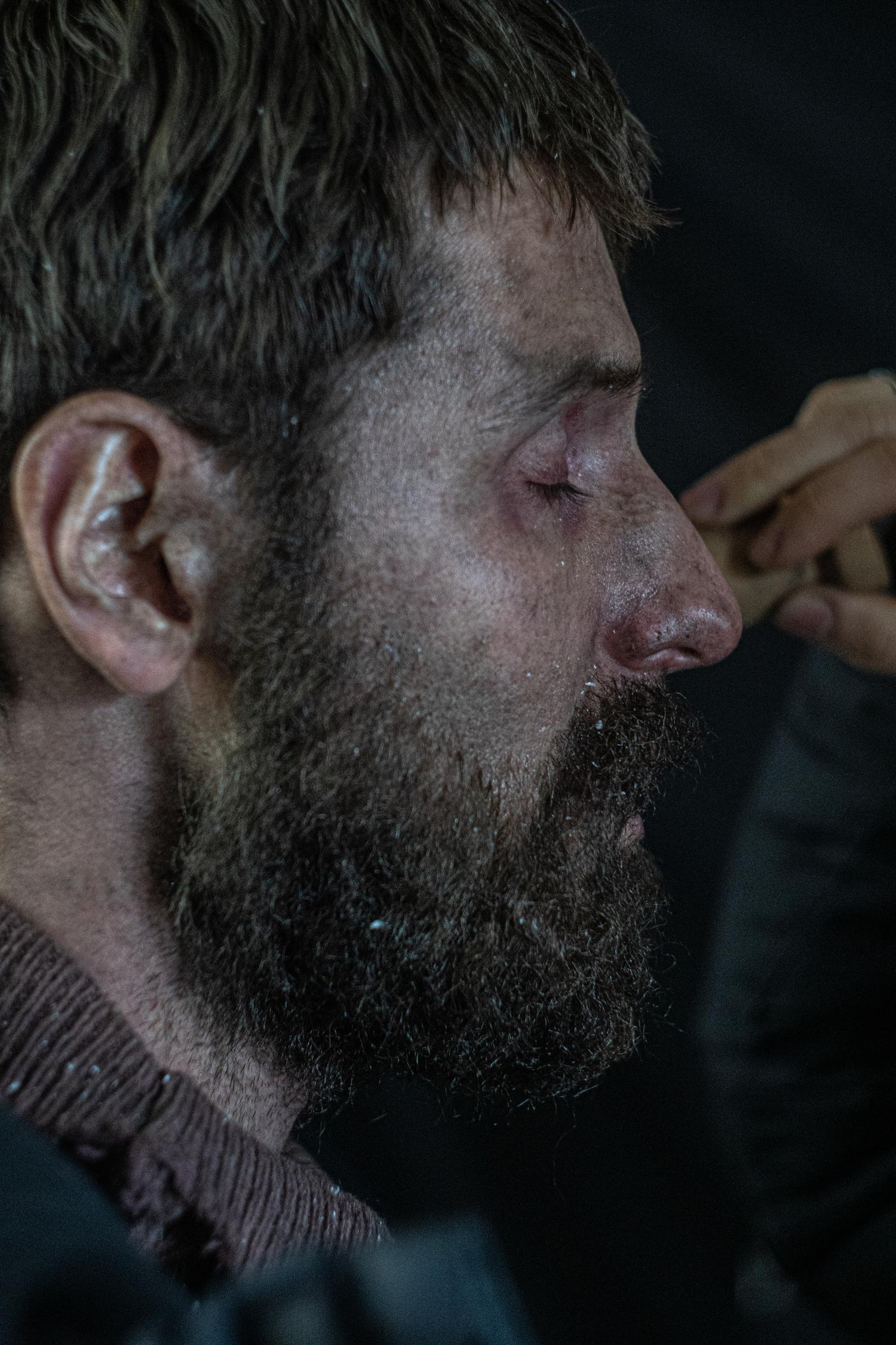Мене відправили жити в табір, який на той момент був закритий. Жив сам у будиночку, ходив у гори, медитував, налаштовувався. Моє голодування було якраз у найактивнішій фазі. За два дні до знімального процесу зробив прям повне голодування. Загалом я мав оце акторське щастя залучити весь свій арсенал навичок, здібностей і фантазії.