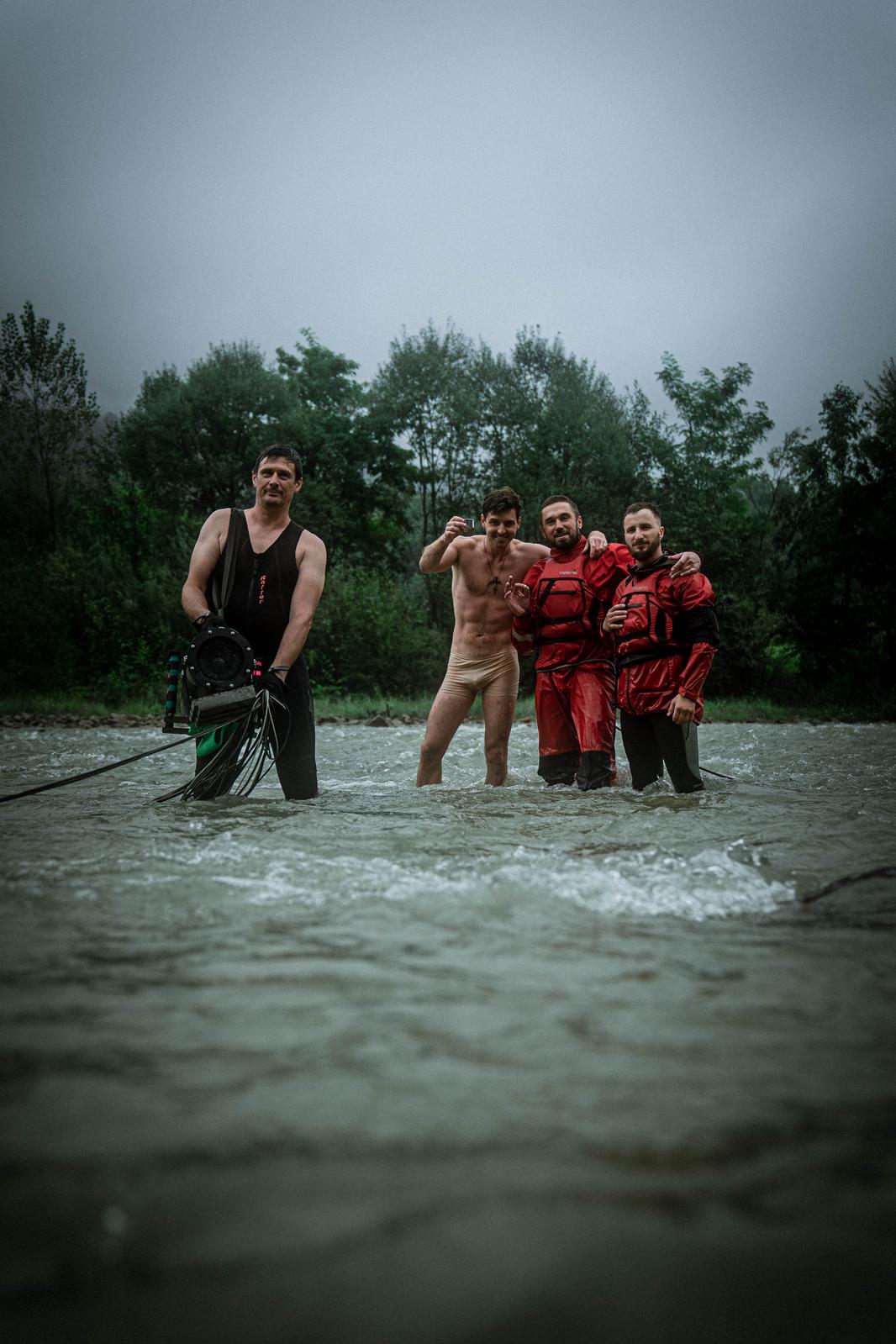 Одного дня ми знімали, як Андрій Ворон перепливає річку Черемош, а в нього стріляють прикордонники. Це був жовтень чи листопад, вода дуже холодна в гірській річці, а я повністю голий, тільки у спідній білизні тілесного кольору. Це найбільший холод, який я у своєму житті переживав, аж дрижаки б'ють. Думав, що не зможу там провести цілий день, але зміг. Команда відпоювала мене чаями, садила в машину зігрітися, а наприкінці відправила в лазню. Це був, мабуть, фізично найтяжчий день.