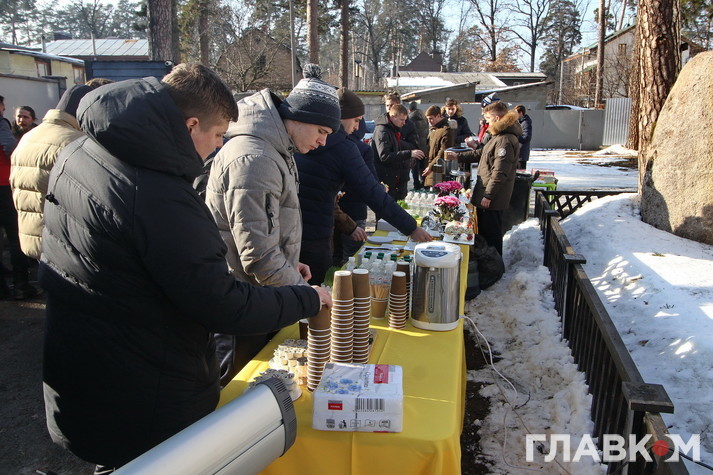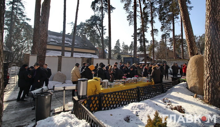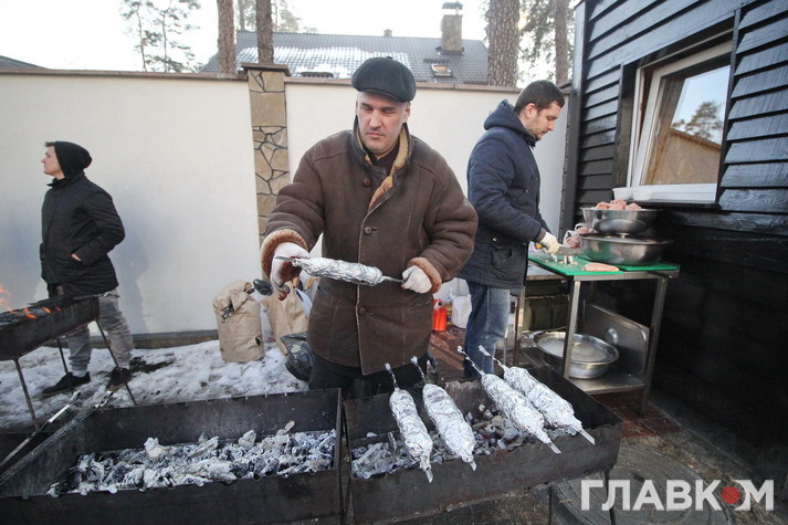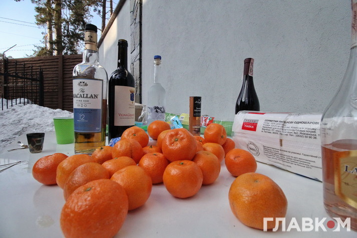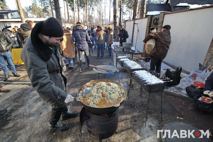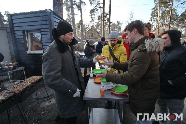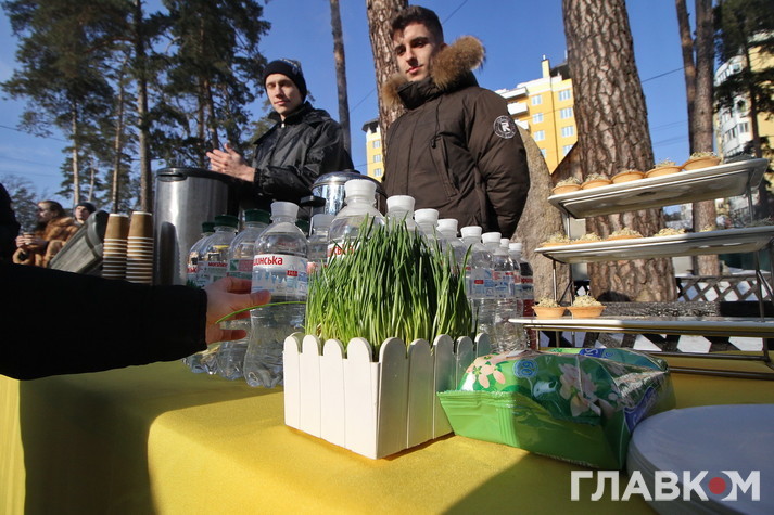 Шведський стіл з бутербродами і кавою, локація з пловом і шашликами, стільці і три біотуалети розташовані на вулиці – з зовнішньої сторони паркану, з внутрішньої – стіл з алкогольними напоями: зробив крок, і ти вже не порушуєш закон, розпиваючи алкоголь у громадському місці, бо перебуваєш на приватній території. Напої різні: від віскі The Macallan майже за дві тисячі гривень за пляшку до звичайної горілки. Деякі «виборці» приходять зі своїм.