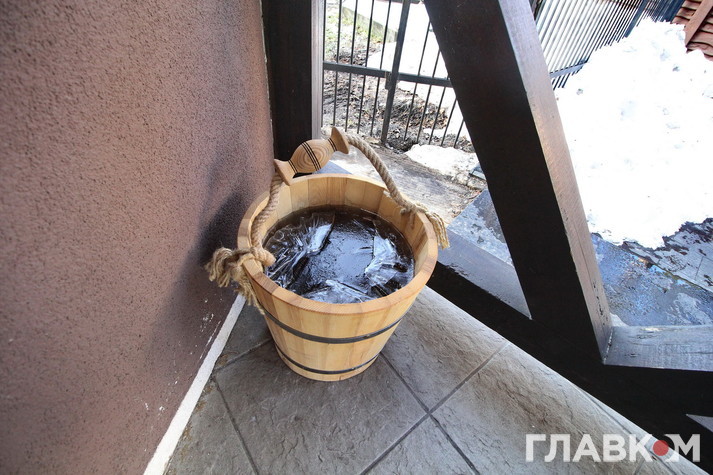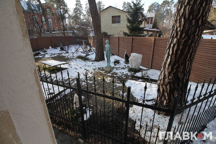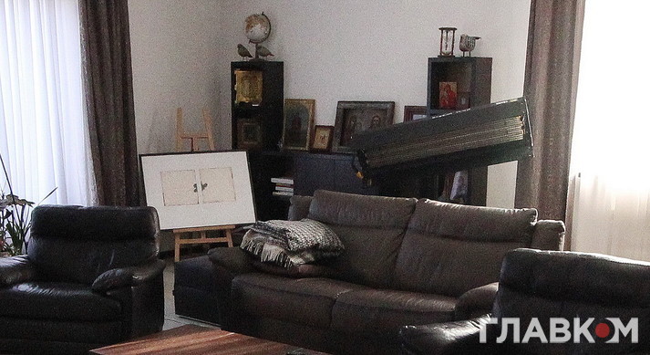 Гвинтові сходи на гору. У робочому кабінеті – ігрова приставка, книжки і точна копія мозаїки святого Павла з Михайлівського собору. У кількох кімнатах стоять ікони.