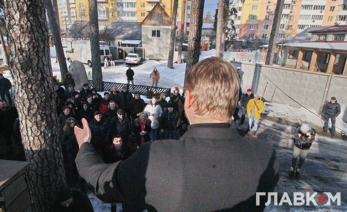 Від початку заходу минула година. Петров залазить на дах автомобіля, з якого до цього гучно лунала музика, і починає свою промову.