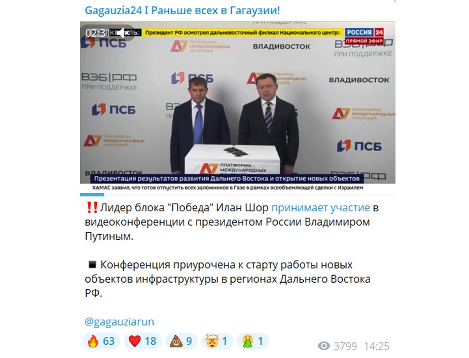 «Шорівці», що відкрито підтримують політику російського диктатора Володимира Путіна, навіть проводили свій з'їзд у Москві та починали збір підписів «за союз с Росією». Але в липні Центрвиборчком зняв «Побєду» з гонки. Проте олігарх продовжує перебувати в російському пропагандистському дискурсі: наприклад, бере участь у відеоконференціях з Путіним, де розповідає про спільні проєкти з Росією.