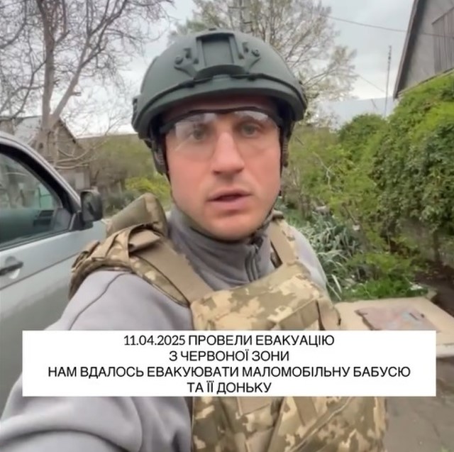 Була у нас броньована автівка, але її знищено. Багато людей евакуював на ній. Бачте, дуже сильний у мене янгол-охоронець, захистив, коли дрон влучив у машину. Зараз користуюся неброньованим автомобілем для евакуації. Зараз вже маємо отримати дві броньованих автівки. Був збір коштів на ці автомобілі, зібрали. Я часто сам один їжджу. А взагалі нас двоє: я і мій напарник.