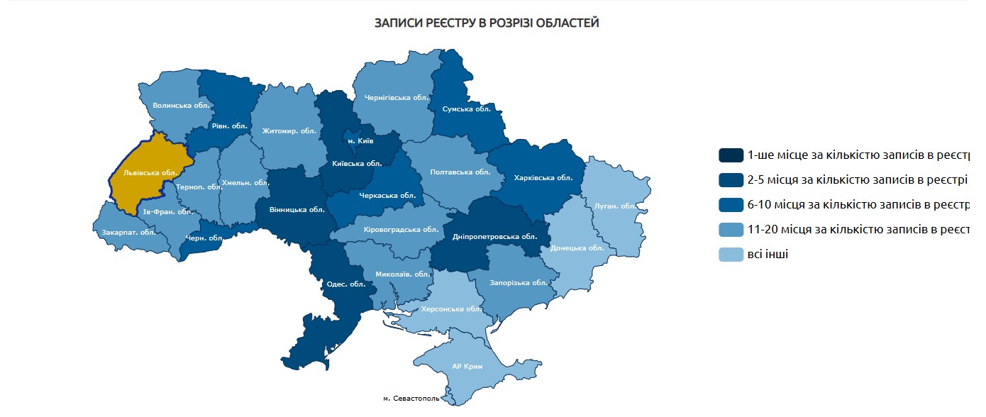 Якщо подивитися на регіональний розріз, то найбільша кількість справ потрапила до реєстру не з Києва, а з Львівської області.