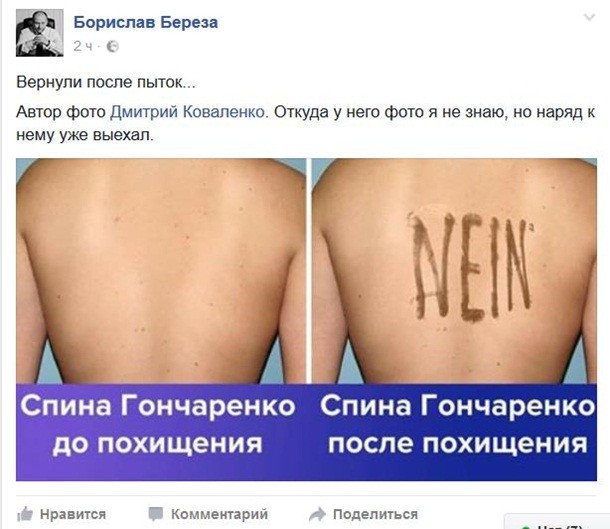 Проте дуже скоро з’ясувалося, що викрадення було постановкою спецслужб. Нібито таким чином було вирішено ввести в оману реальних замовників замаху на Гончаренка, зокрема депутата Лиманської райради Одеської області від Опозиційного блоку Олександра Кушнарьова. Його син загинув під час трагічних подій в Одесі 2 травня 2014-го.