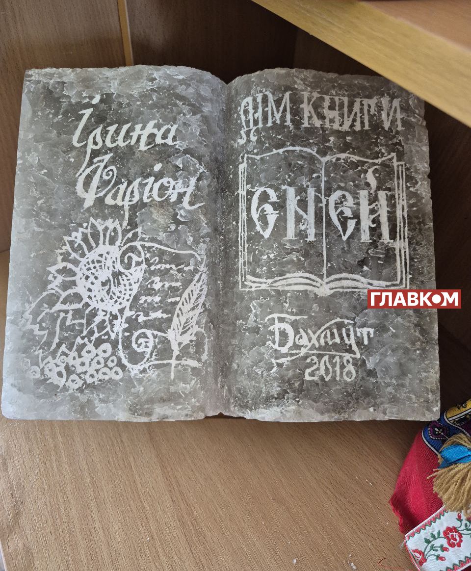 «Тут усе дихає Іриною, – розповідає пані Оксана. – …портрет, пам’ятний знак з Бахмута, який Ірині подарували, мовні плакати… Коли вона працювала зі студентами-архітекторами, то вирішила з ними малювати мову. І це вилилося в чотири добірки плакатів: «Мова – твого життя основа», «Я на сторожі коло них поставлю слово», «Мова: краса і сила» і «Слово – меч духовний».