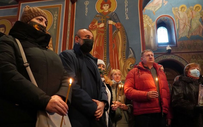 У Михайлівському Золотоверхому Соборі 21 січня відбулася панахида за загиблими «кіборгами» Донецького аеропорту, повідомляє «Апостроф».
