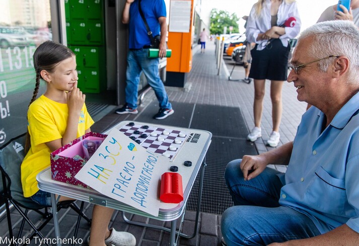 Киянка Валерія Єжова, 10-річна чемпіонка світу з шашок, грою збирає гроші для Збройних сил Українки. Дівчинка пропонує всім охочим на вулиці зіграти з нею за благодійний внесок, який потім відправляє військовим. Про це ідеться у статті видання «Рубрика».