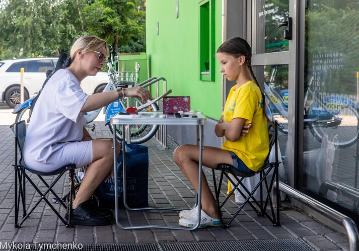 «Зараз навчаюся в Київському палаці для дітей та юнацтва. У мене перший дорослий розряд. Я вже грала на чемпіонатах світу, Європи, три роки поспіль вигравала чемпіонат Києва. А ще я – чемпіонка світу для дітей до десятки років, чемпіонат проходив минулого року в Туреччині, — розповідає дівчинка, розставляючи шашки на дошки і додає: Скоро, першого серпня, буде чемпіонат Європи, але це дуже дорого, тому не знаю, чи поїду».