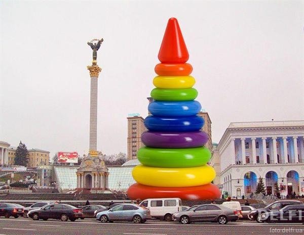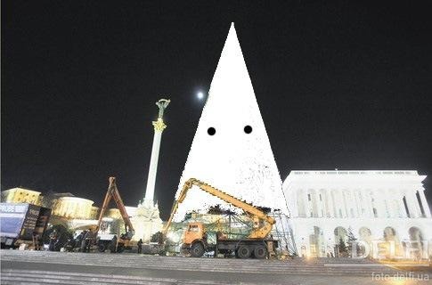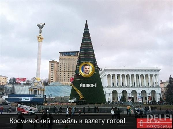 Киевские форумы в последние пару дней кишмя кишат разными вариациями "фотожаб" на украшение новогодней елки на Майдане. Мастера графических редакторов извращаются над фотографиями елки, как только могут. Она превращается то в детский конструктор "пирамидку", то в ракету. А за некоторые пародии на елку можно и от властей схлопотать.