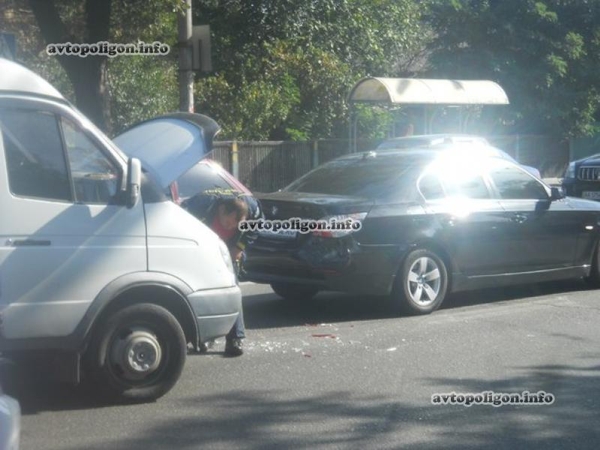 По предварительным данным микроавтобус Газель и BMW 520i двигались в третьем ряду, в направлении Московской площади. По неизвестной причине, а может просто из-за банальной невнимательности, водитель Газели врезался в задний бампер впереди идущей иномарки.