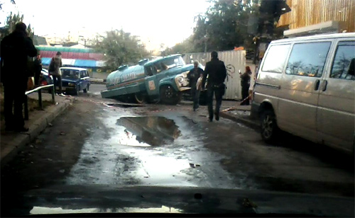 10 октября на бульваре Кольцова, 15, под асфальт провалился грузовик-цистерна.