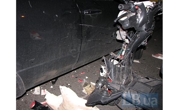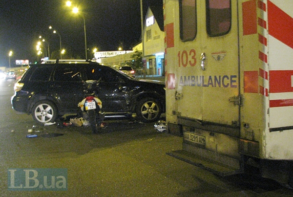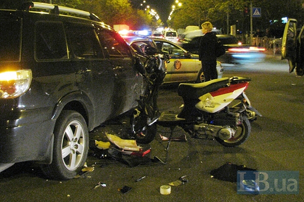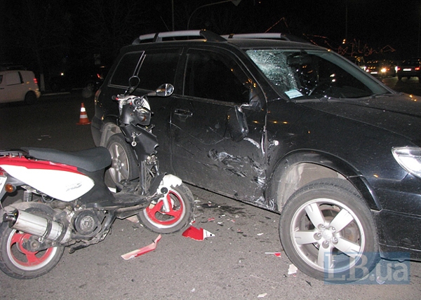Вечером 12 октября в Киеве, на улице Ревуцкого, произошло ДТП: столкнулись автомобиль Mitsubishi и мотороллер.