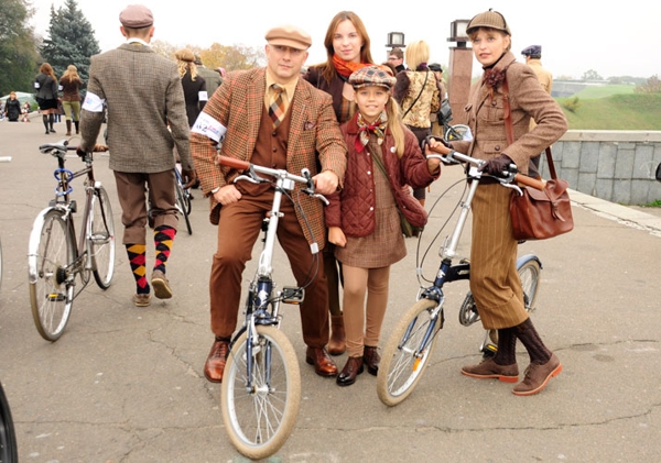 Ретро-круиз – или, как еще его называют – «Твидовый велокруиз» – является подражанием известной лондонской акции TweedRun, когда любители велосипедов, винтажной одежды и свежего воздуха собираются вместе, дабы при полном наряде проехаться по городу. Идея настолько понравилась велосипедистам разных стран, что подобные заезды начали появляться во всём мире. В Киеве Ретро-круиз происходит во второй раз – первый состоялся 14 апреля и имел заметный позитивный резонанс. По словам организаторов, если в первом киевском «твид-ране» приняло участие 160 человек, то во втором – уже 220. Причём не только киевлян, но и гостей из других городов. Из Одессы, например, приехала целая группа из 6 человек, чтобы в платьях и костюмах 20-40-х годов ХХ века проехаться по осеннему Киеву.