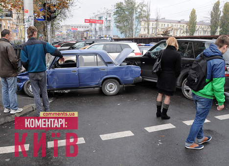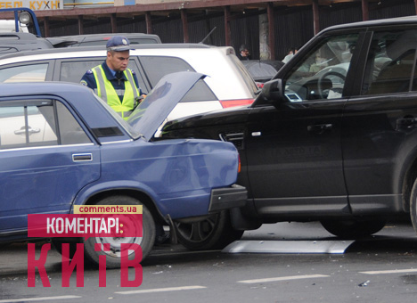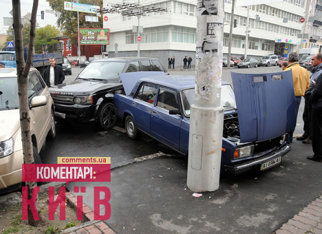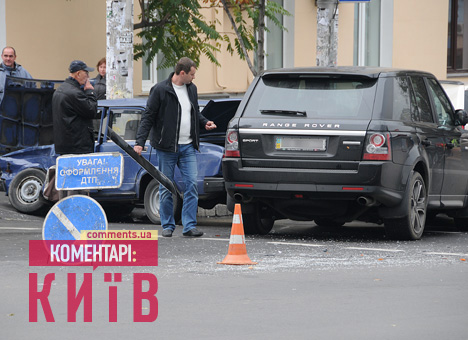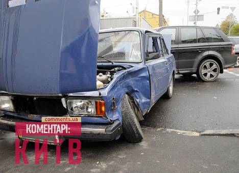 В центре Киева, на перекрестке улиц Жилянская и Горького, джип Range Rover врезался в «Жигули»