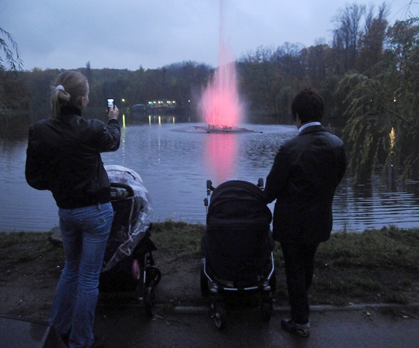 В Голосеевском парке культуры и отдыха имени Максима Рыльского на нижнем каскаде Ореховатских прудов открыли первый плавучий светомузыкальный фонтан. Водяная система фонтана имеет 63 форсунки и 53 светодиодные лампы и работать в четырех различных режимах: «Конус», «Гейзер», «Елочка» и «Дзига», сообщает пресс-служба КГГА.