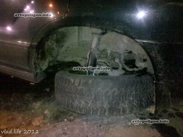 В результате машины разворачивает на 180 градусов и отбрасывает на 20 метров друг от друга - Mercedes обратно на центр перекрестка, Subaru на ул.Кривоноса, где машина выламывает колесо о бордюрный камень.