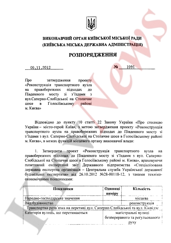 Распоряжение об утверждении проекта реконструкции объекта подписал председатель КГГА Александр Попов с целью улучшения технического состояния дорожной сети города, сообщает пресс-служба КГГА.