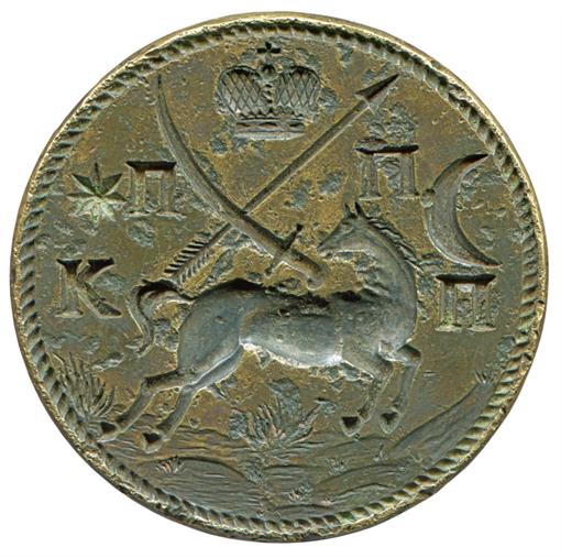 Еще одна древняя печать с изображением военных символов коня, меча, сабли и стрелы принадлежала Кодацкой паланке войска запорожского Низового. Она является символом власти полковника. Паланка - это укрепленное поселение - паланок, где жили полковник и старшина войска. К слову, у каждой паланки была своя печать. Эта печать применялась с 1750 года и в свое время заверила ни один важный документ.