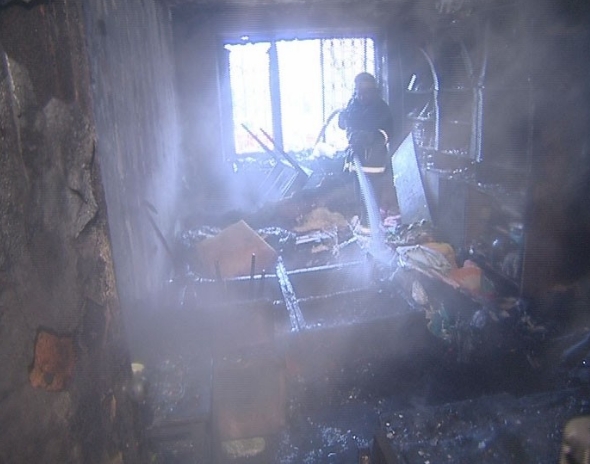 Одна из комнат квартиры выгорела полностью. Другая, а также коридор и кухня, пострадали меньше. К тому же закоптился общий коридор и двери соседних квартир. По словам женщины, скорее всего всему виной короткое замыкание в розетке возле дивана. Однако точная причина будет известна позже.