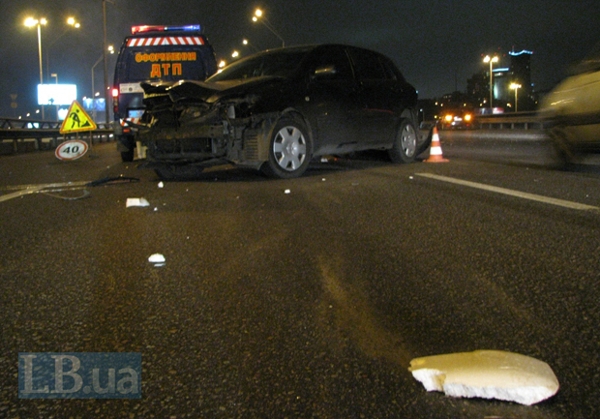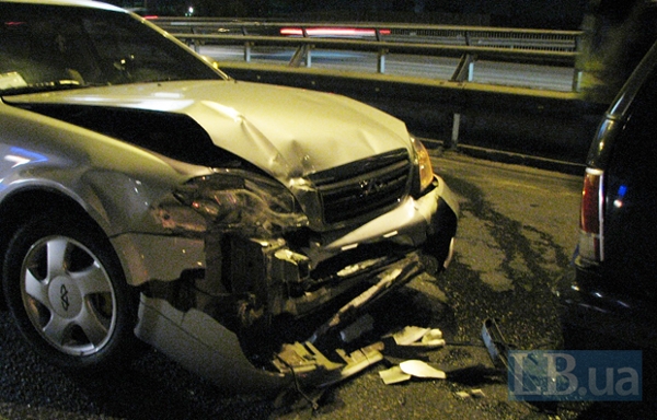В среду вечером в Киеве на Южном путепроводе столкнулись четыре автомобиля.